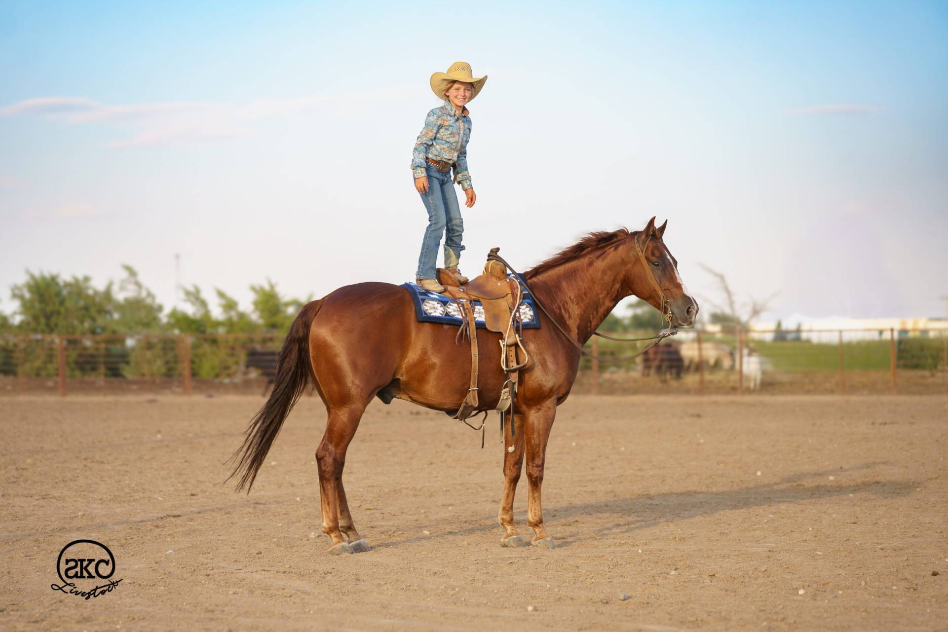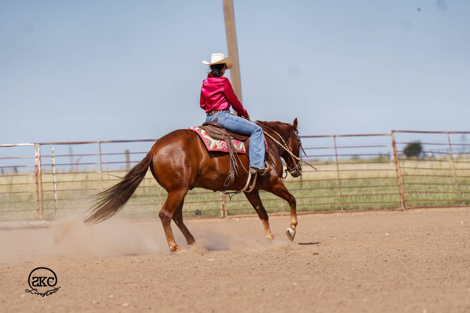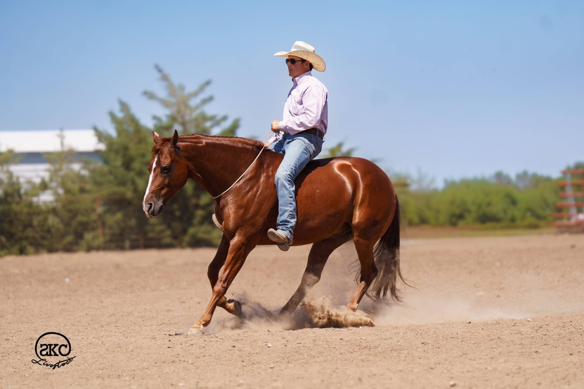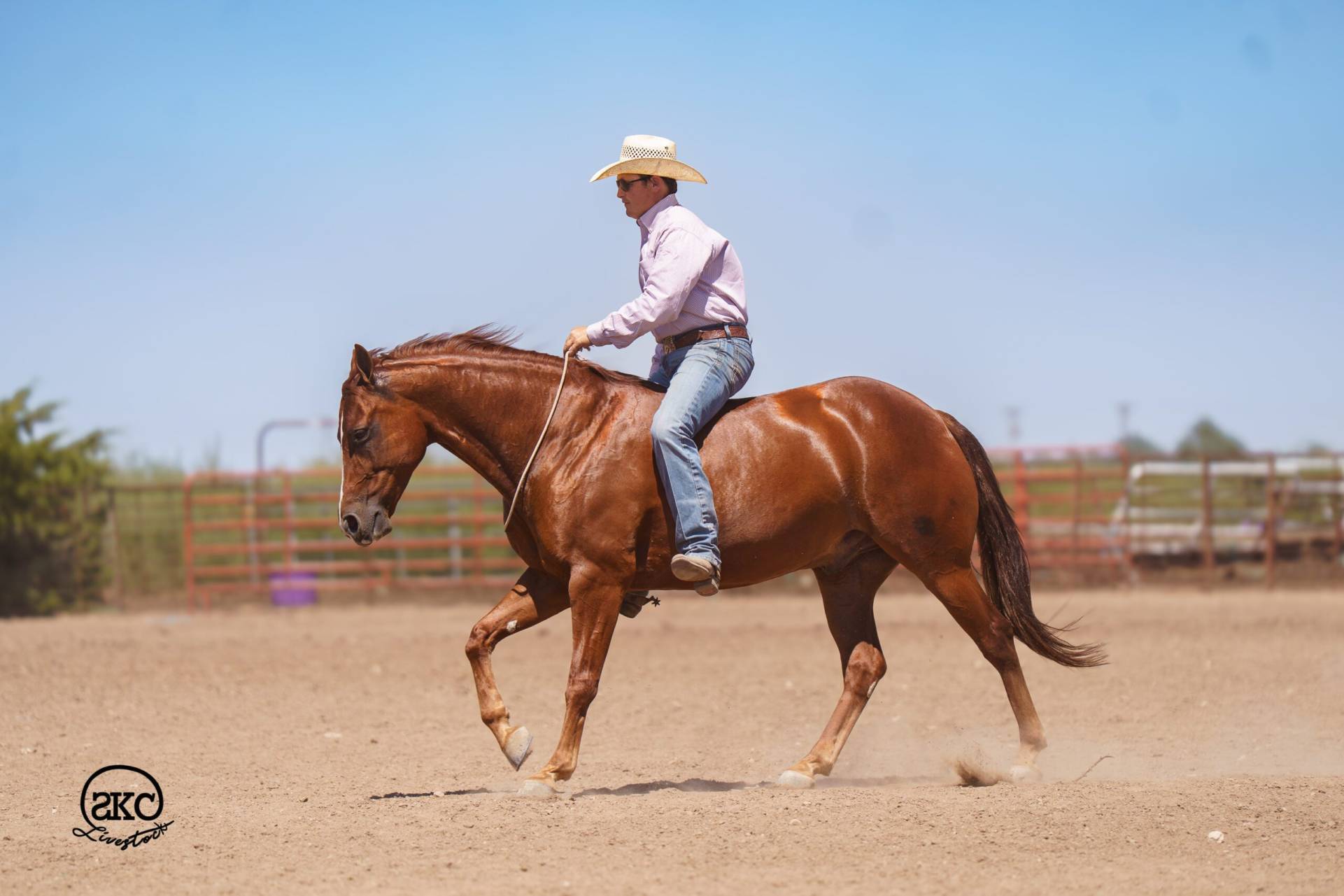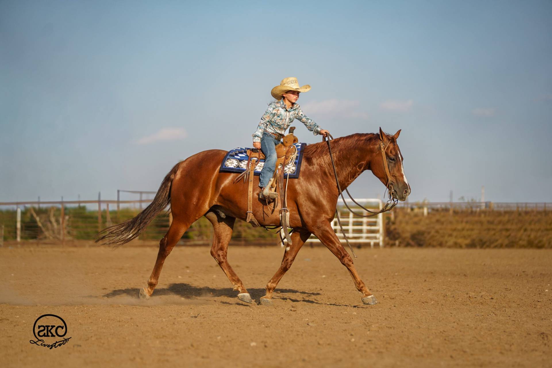 Meet French Toast, a 14.3-hand, 10-year-old sorrel gelding who is a super cute mover, smooth, and easy-going finished reiner. This good gelding is ready to go show and has a background as a ranch horse, making him an excellent candidate for VRH events or everyday joy rides. He’s been used on the ranch, confidently ponying colts and handling everything from crossing water and brush to working around machinery, traffic, dogs, and all the chaos that comes with kids and busy ranch life. He’s also accustomed to gun fire and is trained to curbside mount for any level rider. Calm and dependable, this is the kind of horse that can handle any amount of time off and remain just as pure and broke.