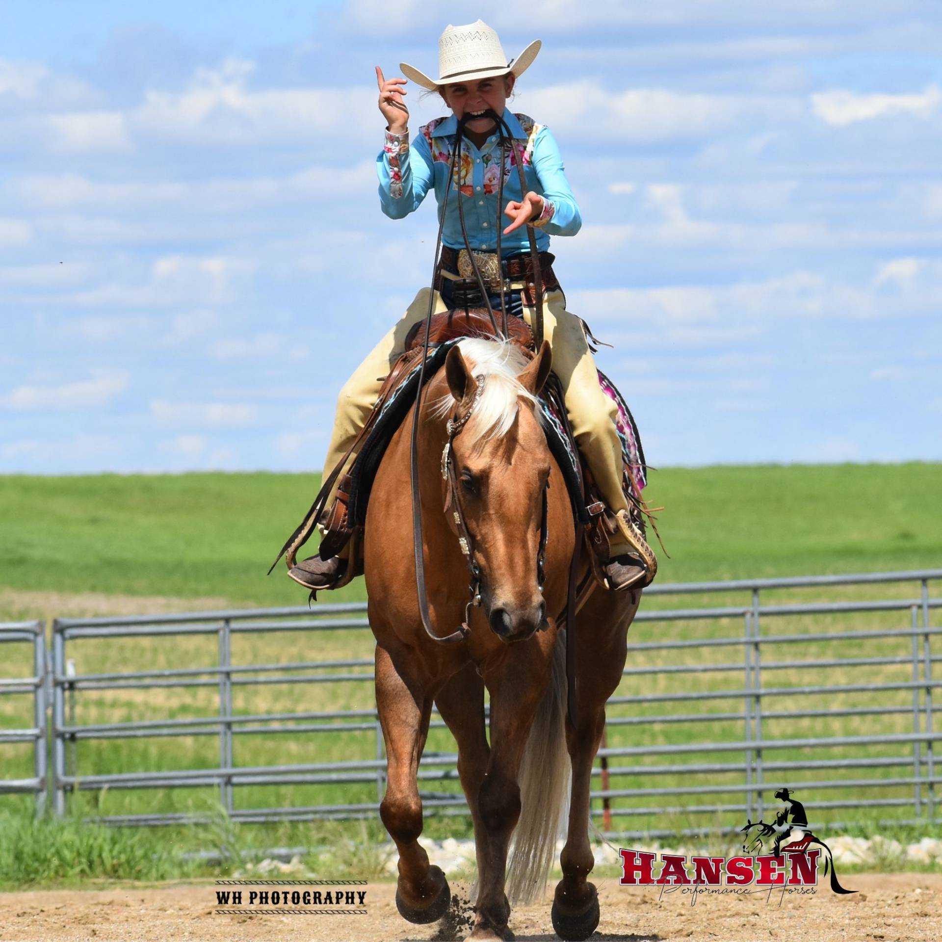 Megan and Andy, are excited to see their children, Wyatt (12) and Teagan (10), share the same passion for horses. Together, the family owns and operates Hansen Performance Horses, where they focus on training well-rounded horses. Their horses are exposed to a variety of disciplines, from team roping to trail riding, ranching, and even jumping. It’s also common for them to compete at ranch horse shows, where Teagan proudly won her first buckle!