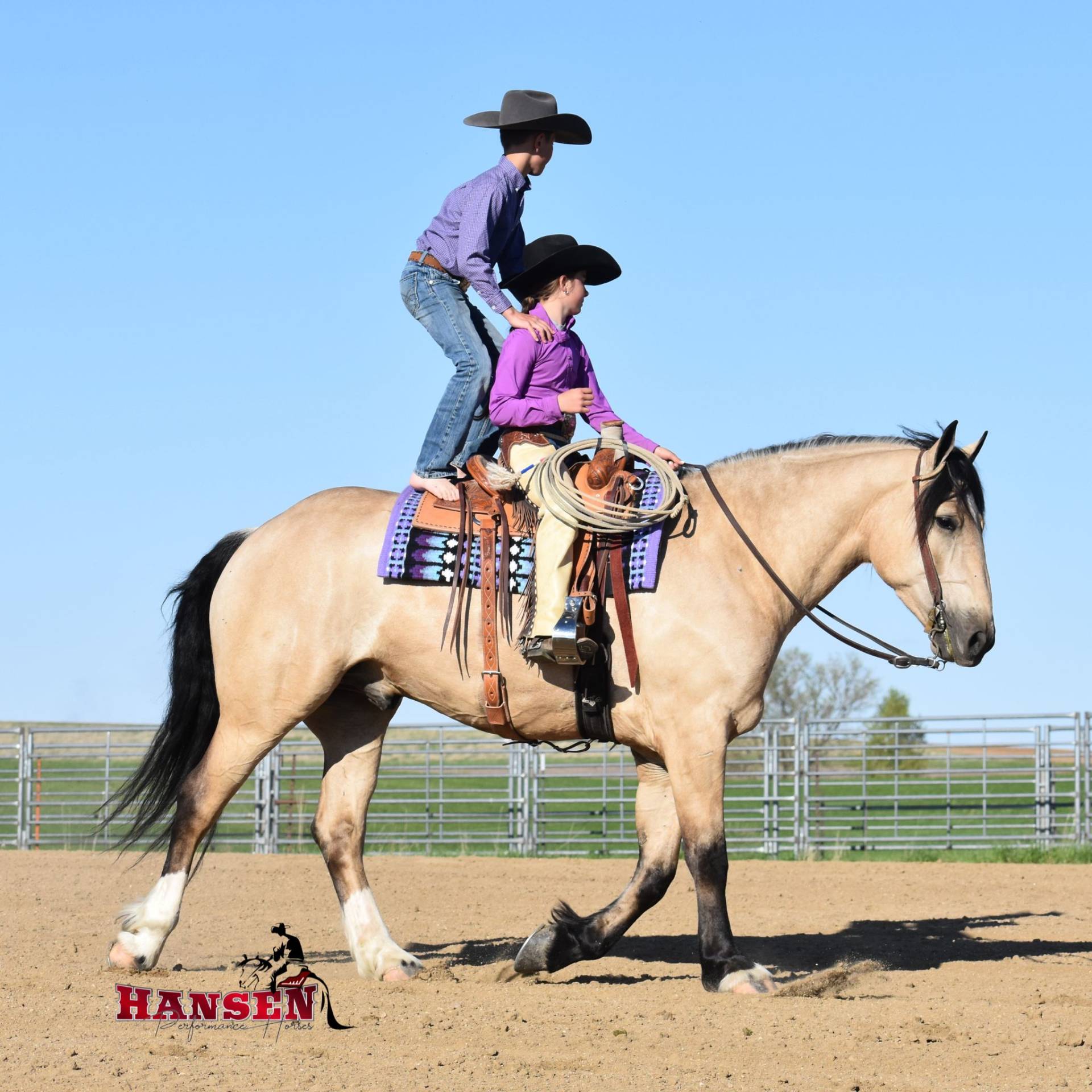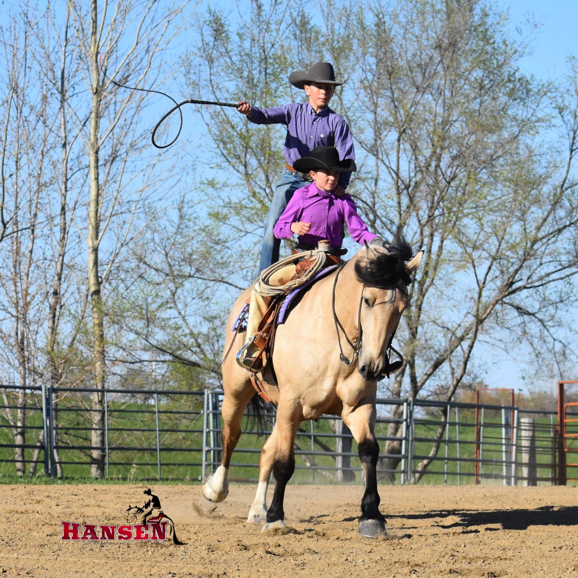 Megan and Andy, are excited to see their children, Wyatt (12) and Teagan (10), share the same passion for horses. Together, the family owns and operates Hansen Performance Horses, where they focus on training well-rounded horses. Their horses are exposed to a variety of disciplines, from team roping to trail riding, ranching, and even jumping. It’s also common for them to compete at ranch horse shows, where Teagan proudly won her first buckle!