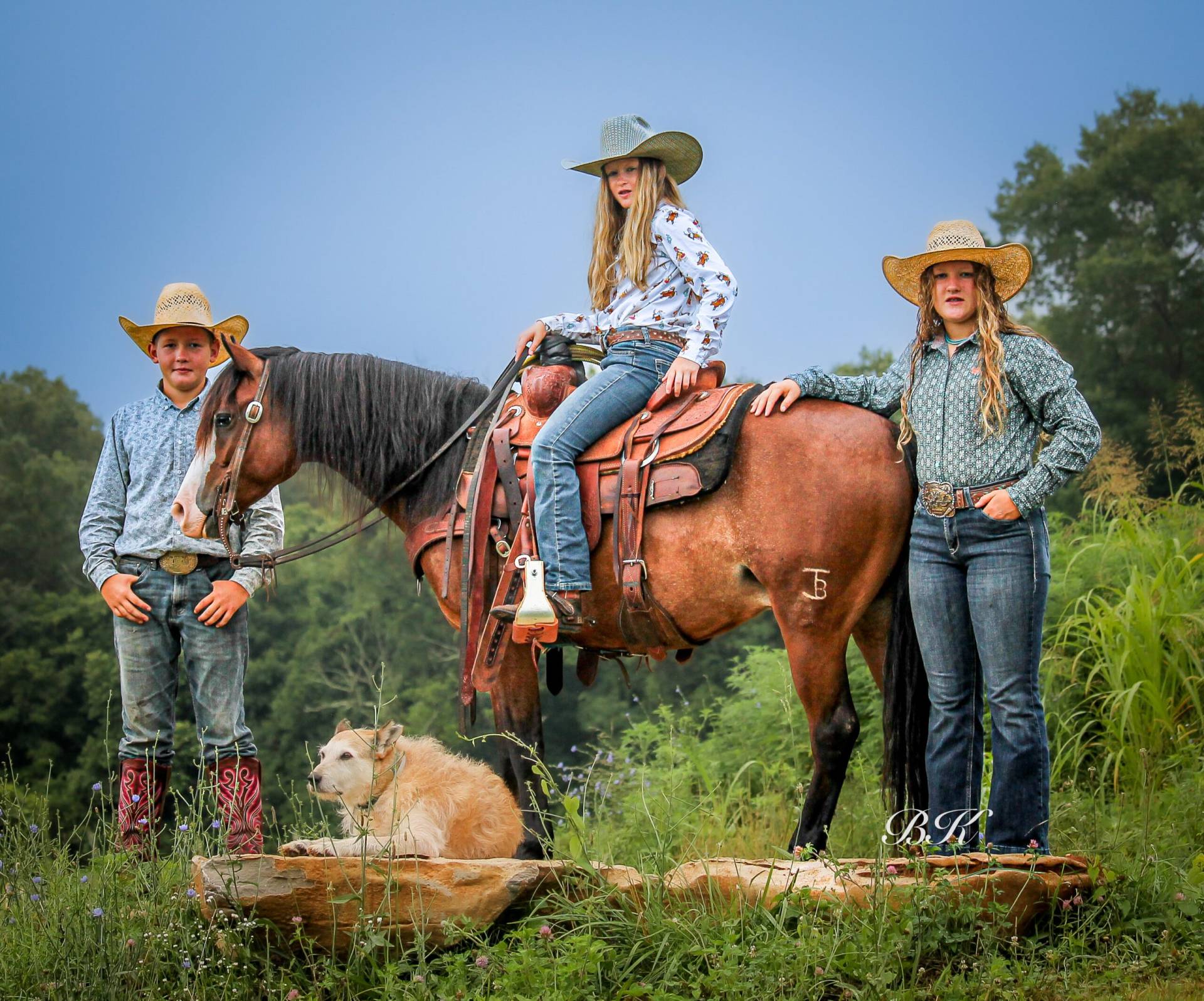 Rockin' TB LLC Farm and Livestock, now located in southern Indiana, consists of Taylor, Brownie Binkley, and their three children: Bristol, Tucker, and Britta. We began our foundation in the hills of the Missouri Ozarks, where our family worked side by side running cattle and raising horses for both the ranch and the team roping arena. From the start, our focus has been on producing well-rounded, dependable horses with a foundation that makes them truly versatile, whether on the ranch, in the show pen, or under the lights of the rodeo arena. That is where our children developed a true passion for producing an exceptional horse.