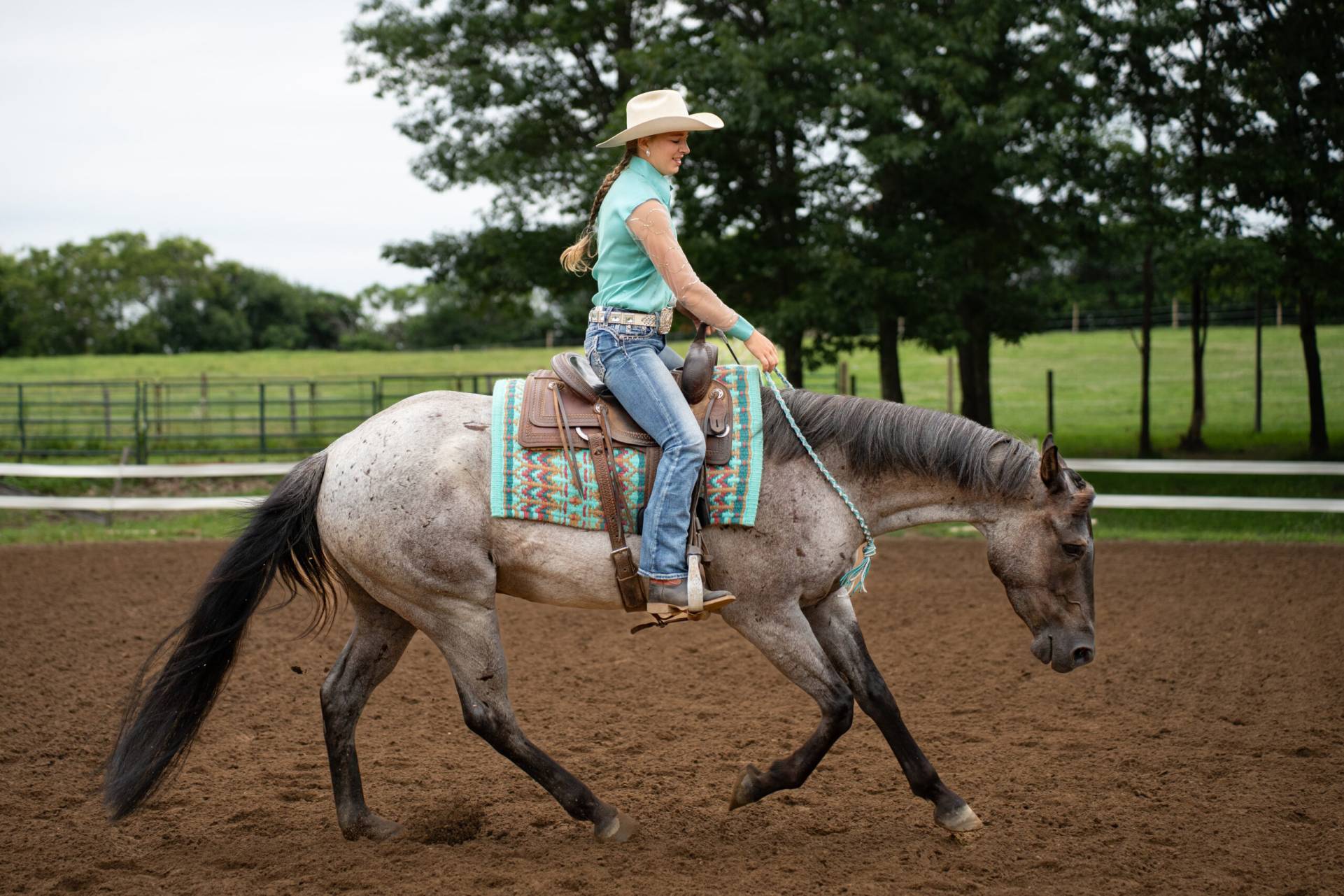 Tiffany Stauffer, founder of Grace & Grit Horsemanship, has dedicated her life to horses, riding since the moment she took her first steps. With a rich history spanning versatility ranch horse competitions, breed shows, cowboy mounted shooting, western dressage, barrel racing, reining, ranch sorting, show jumping, and more, Tiffany deeply understands the importance of a solid foundation for creating well-rounded horses across various disciplines.