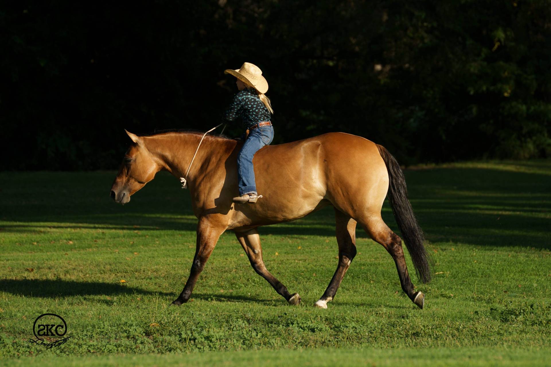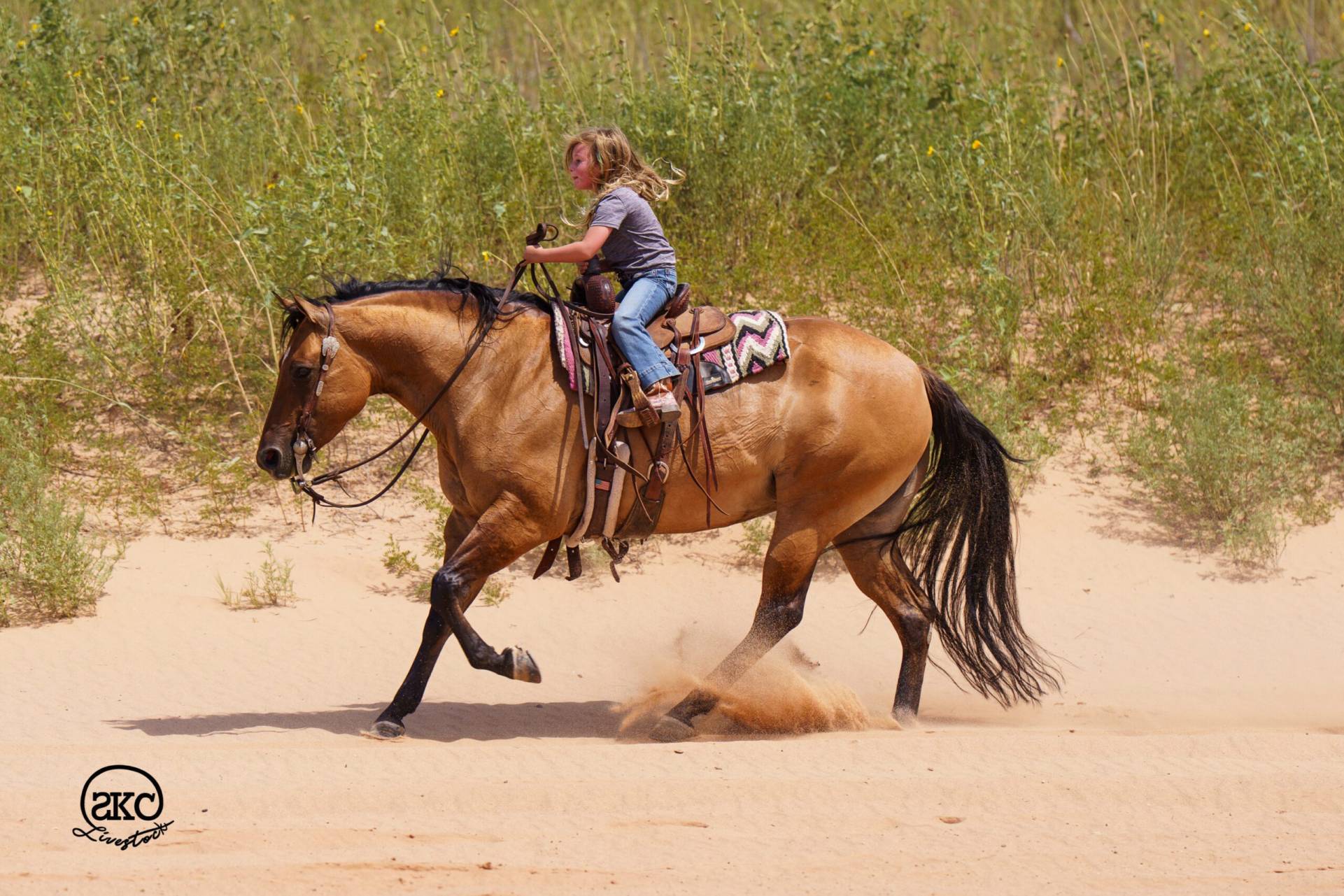 Sopapilla equally at home in the arena, out on the trail, or working on the ranch, making her a true all-around partner. With her striking red dun color, finished training, and rock-solid temperament, she’s the kind of mare that fits every rider — from youth competitors to someone just looking for a forever horse.