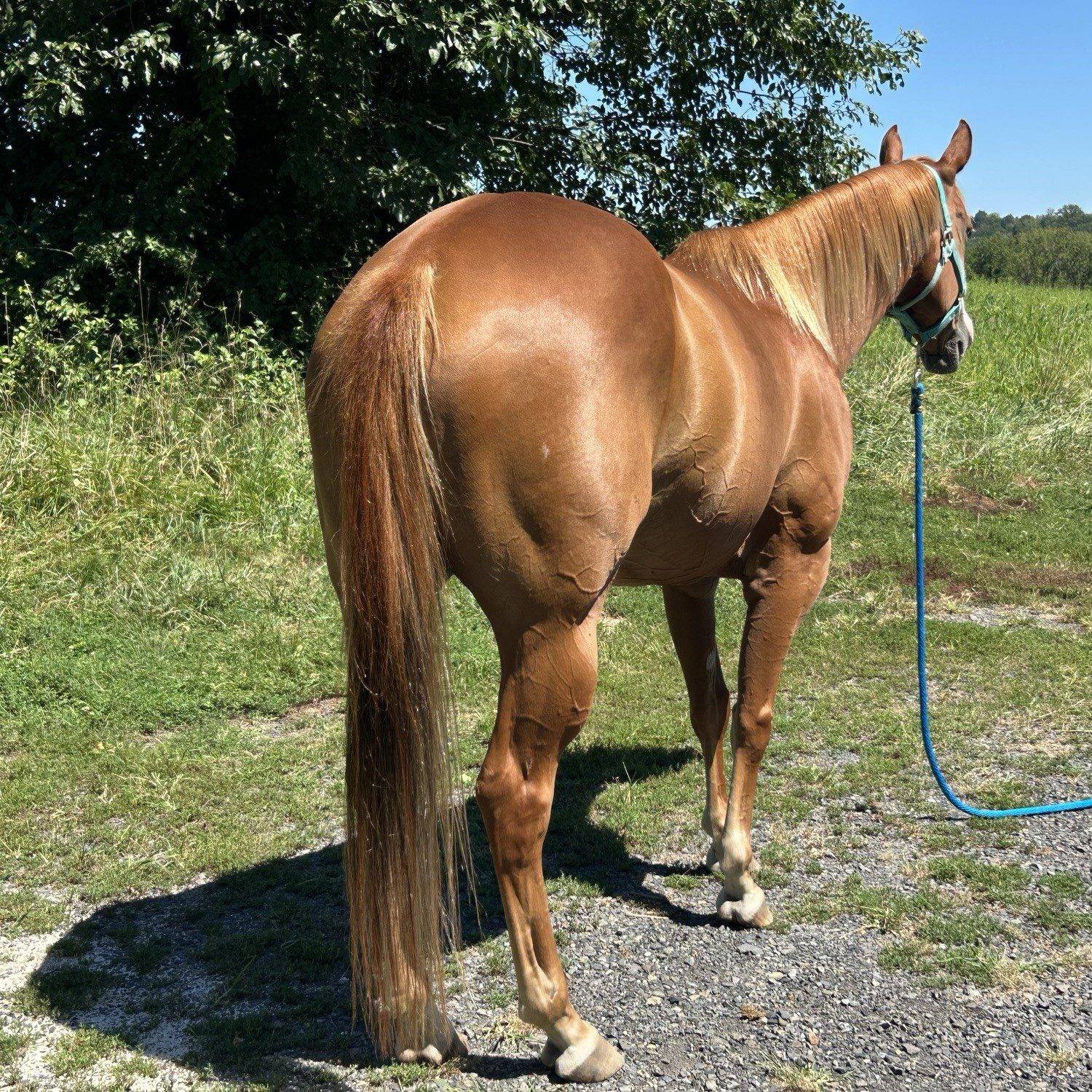 Smoken Red Badger is by Colonel Smoken Badger APHA Champagne Creamello Overo, out of APHA Sorrel Overo, Three Jay Smoken Foxy a granddaughter of Mr Gun Smoke.