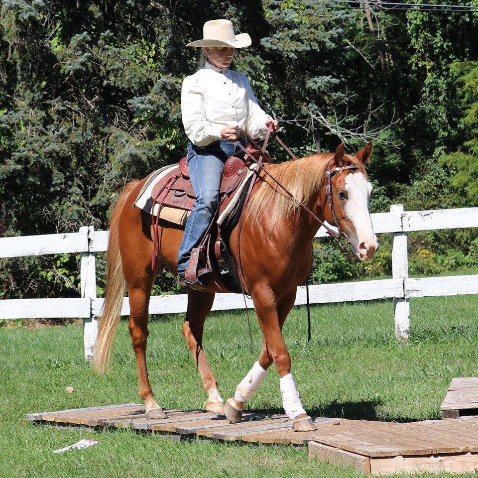 She is a very handy little horse with a great work ethic. She is easy to maneuver with a kind eye and a calm and willing demeanor. She is a forward good mover, and is good in Ranch Classes, Trail Classes, Trail Obstacles and Western Dressage. She would be an excellent Working Equitation Mount, she has over & $1,700. in Trail Challenge earnings from the Horse World Expo, Trail Champions Challenge, she Won numerous Trail Challenge Awards in Judged/Timed and Gamblers Choice Events.